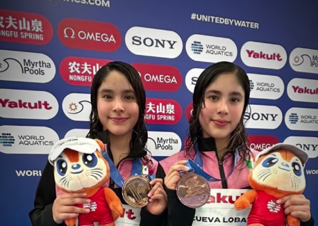Singapur | 29 de julio de 2025. Las clavadistas mexicanas Lía y Mía Cueva, de tan solo 14 años de edad, hicieron historia este martes al conquistar la medalla de bronce en la prueba de clavados sincronizados desde trampolín de tres metros, en el Mundial de Natación Singapur 2025.