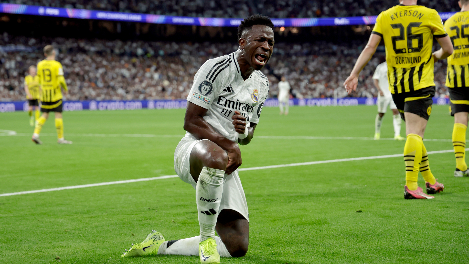 El Borussia Dortmund, dirigido por el exmadridista Nuri Sahin, soñaba con una victoria tras los goles de Donyell Malen y Bynoe-Gittens en la primera mitad. Sin embargo, la mística del Bernabéu resurgió, y los hombres de Carlo Ancelotti desataron una tormenta de goles en el segundo tiempo, con Vinicius como protagonista. El brasileño marcó su primer triplete en Champions, mientras el estadio coreaba su apoyo al equipo.