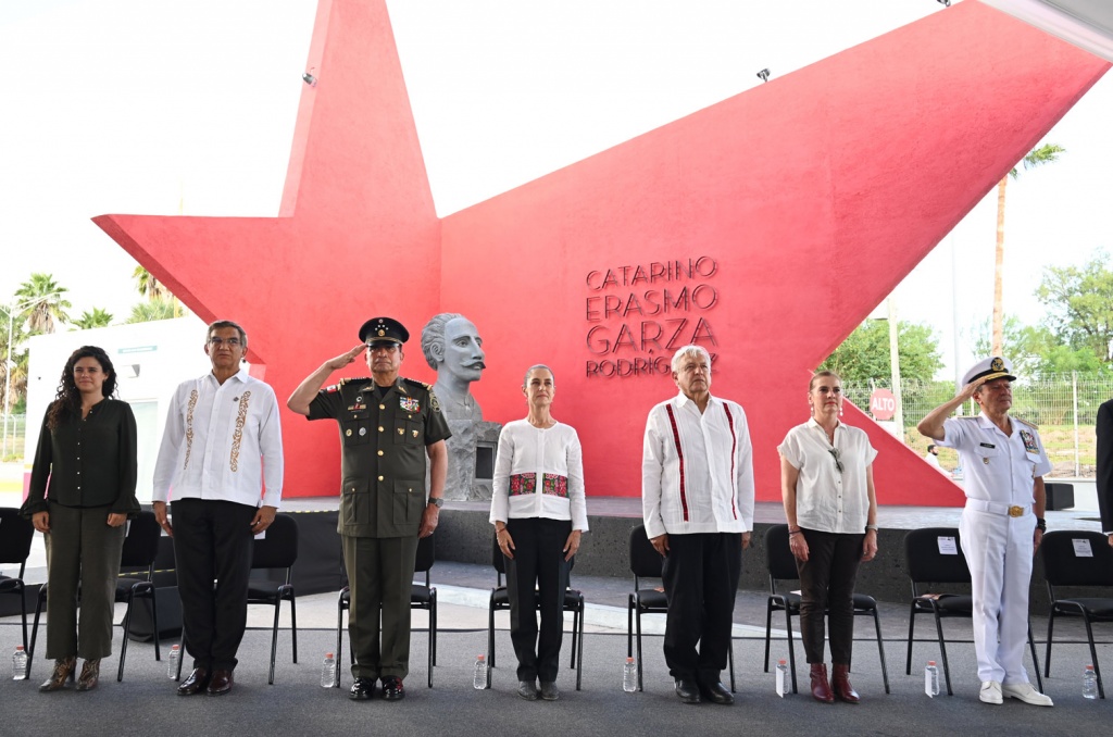 En el busto realizado por el escultor Pedro Reyes, el bisnieto de Catarino Erasmo Garza Rodríguez, Carlos Tijerina, colocó los restos repatriados del también periodista y activista. El mandatario montó Guardia de Honor, mientras la Banda de Guerra de la Secretaría de la Defensa Nacional ejecutó el Toque de Silencio.