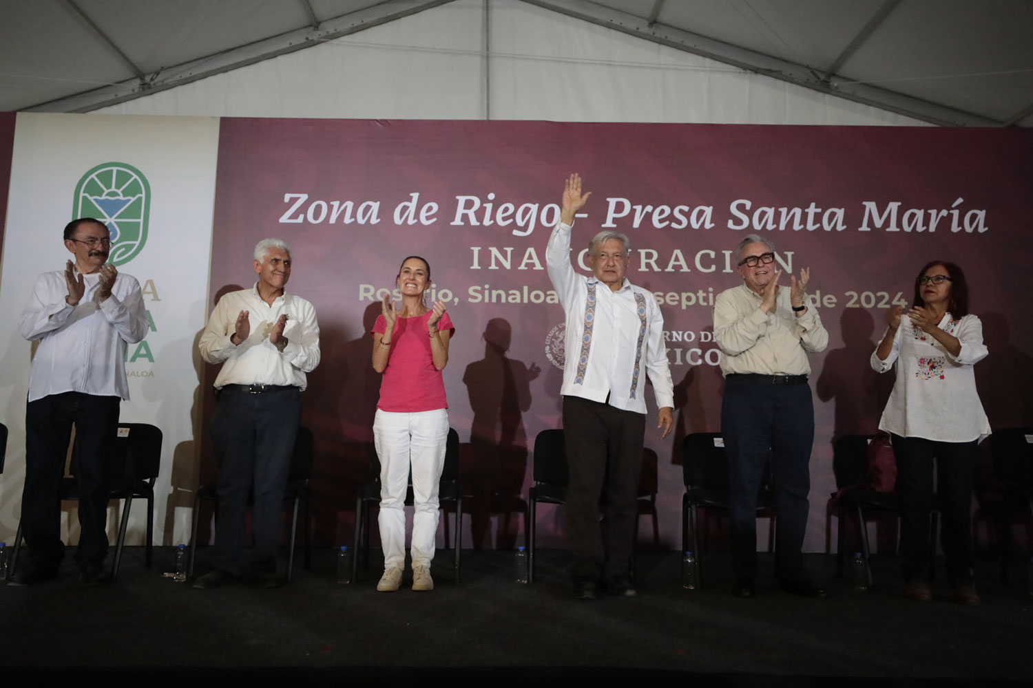 En la última gira de trabajo de fin de semana, el presidente Andrés Manuel López Obrador firmó el decreto por el cual se establece la zona de riego de la presa Santa María en Sinaloa; la presidenta electa, Claudia Sheinbaum Pardo, rubricó el documento como testigo de honor.