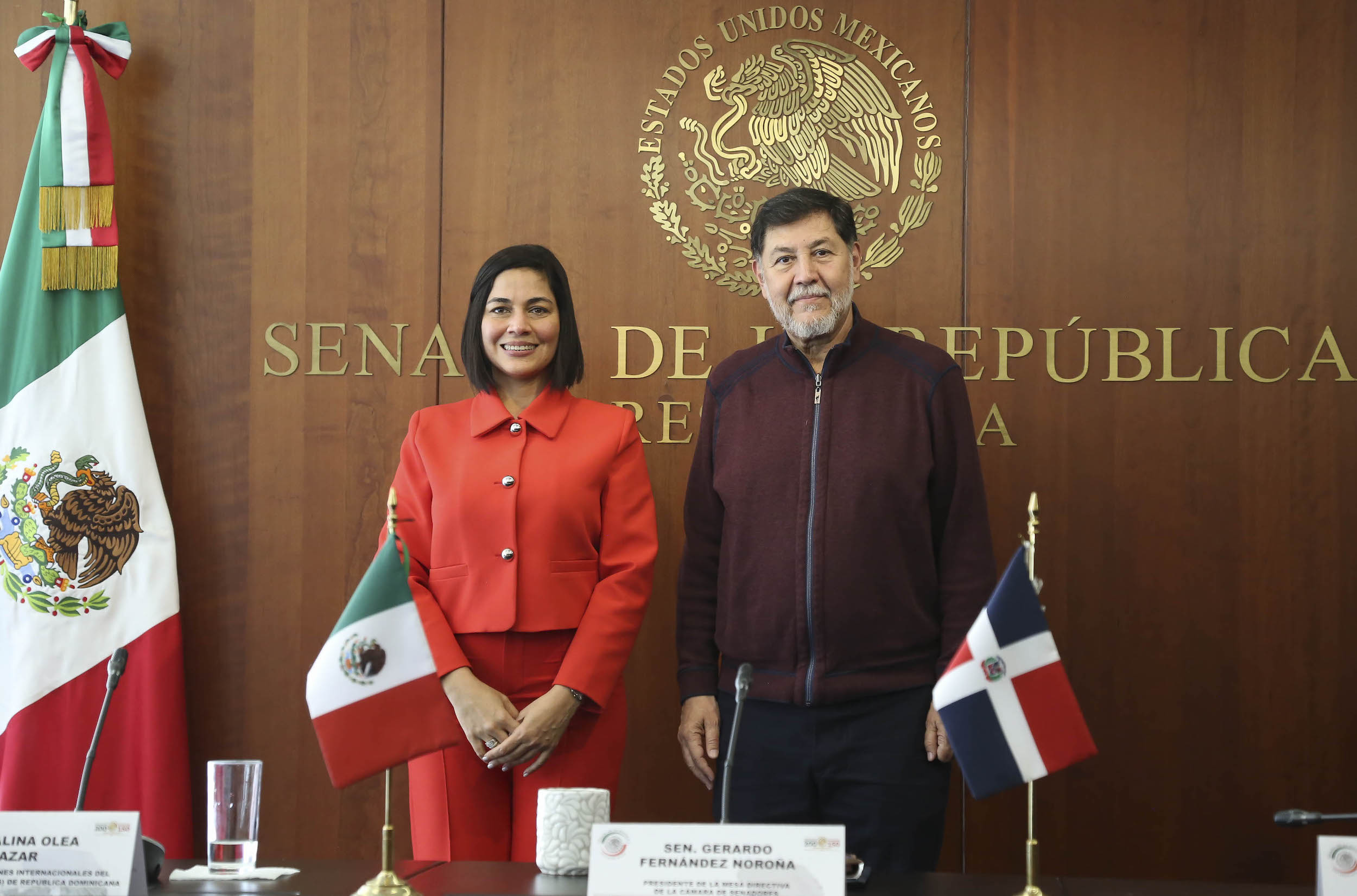 Durante la reunión que sostuvo con la diputada Catalina Olea Salazar, secretaria de Relaciones Internacionales del Partido Justicia de la República Dominicana, el presidente del Senado de la República, Gerardo Fernández Noroña, refrendó el compromiso del gobierno mexicano para estrechar los lazos de cooperación y de amistad con las naciones de América Latina y el Caribe.