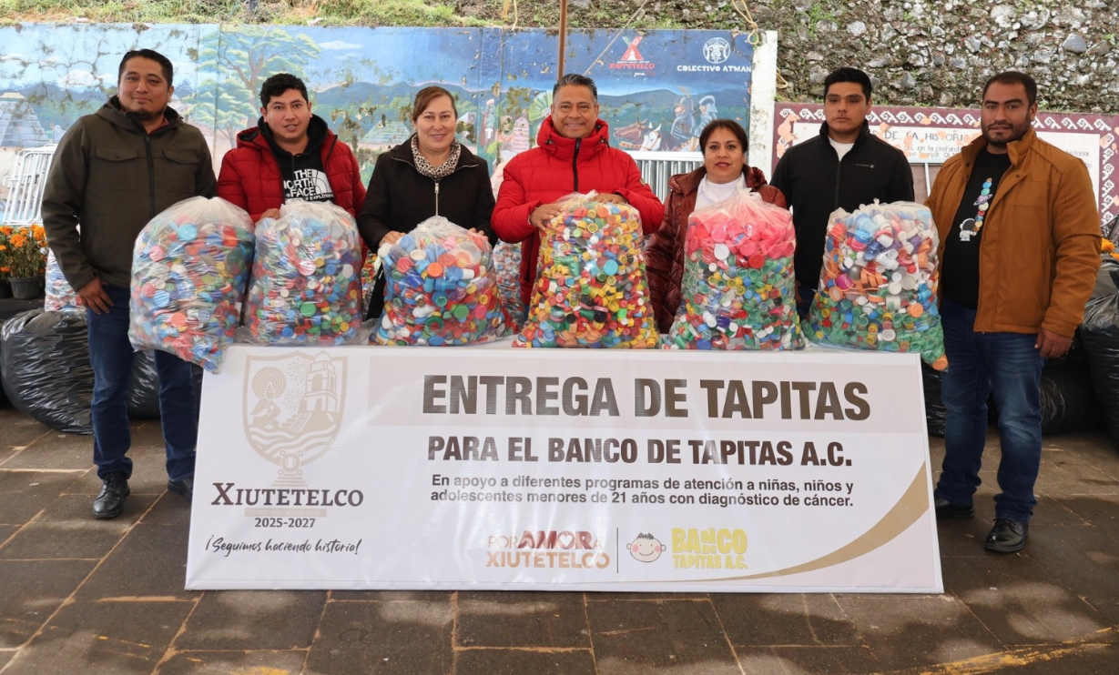 Xiutetelco, Puebla. — Con un firme compromiso por el bienestar social y la salud infantil, el presidente municipal de Xiutetelco, Ing. Baltazar Narciso Baltazar, encabezó la entrega de una tonelada de tapitas al Banco de Tapitas A.C., una organización dedicada a recaudar recursos para apoyar programas de atención a niñas, niños y adolescentes menores de 21 años diagnosticados con cáncer.