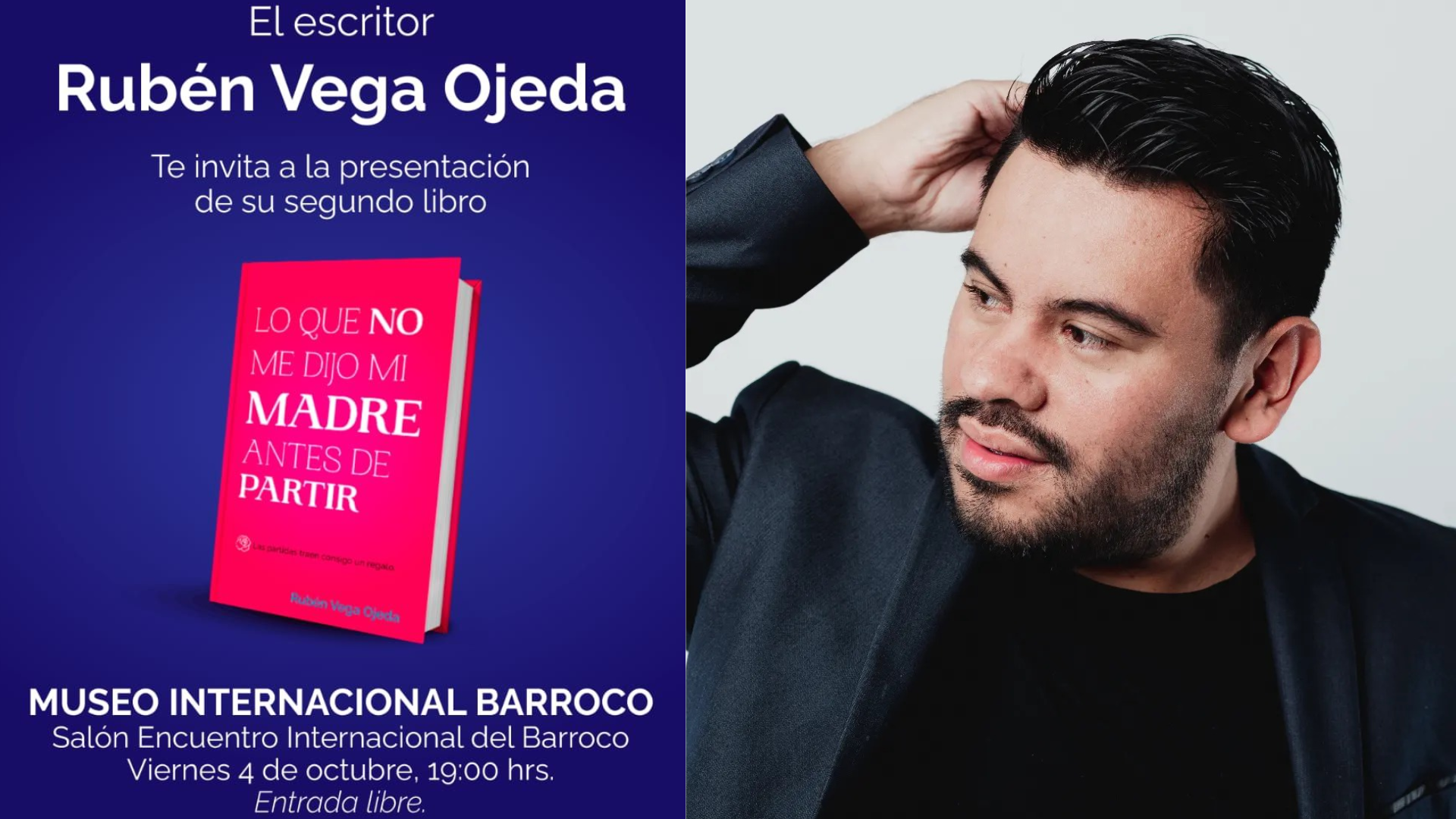 El joven escritor Rubén Vega Ojeda presentará su más recientemente libro, «Lo que no me dijo mi madre antes de partir», en el Museo Internacional del Barroco, el próximo viernes 4 de octubre a las 7:00 pm. con entrada libre.